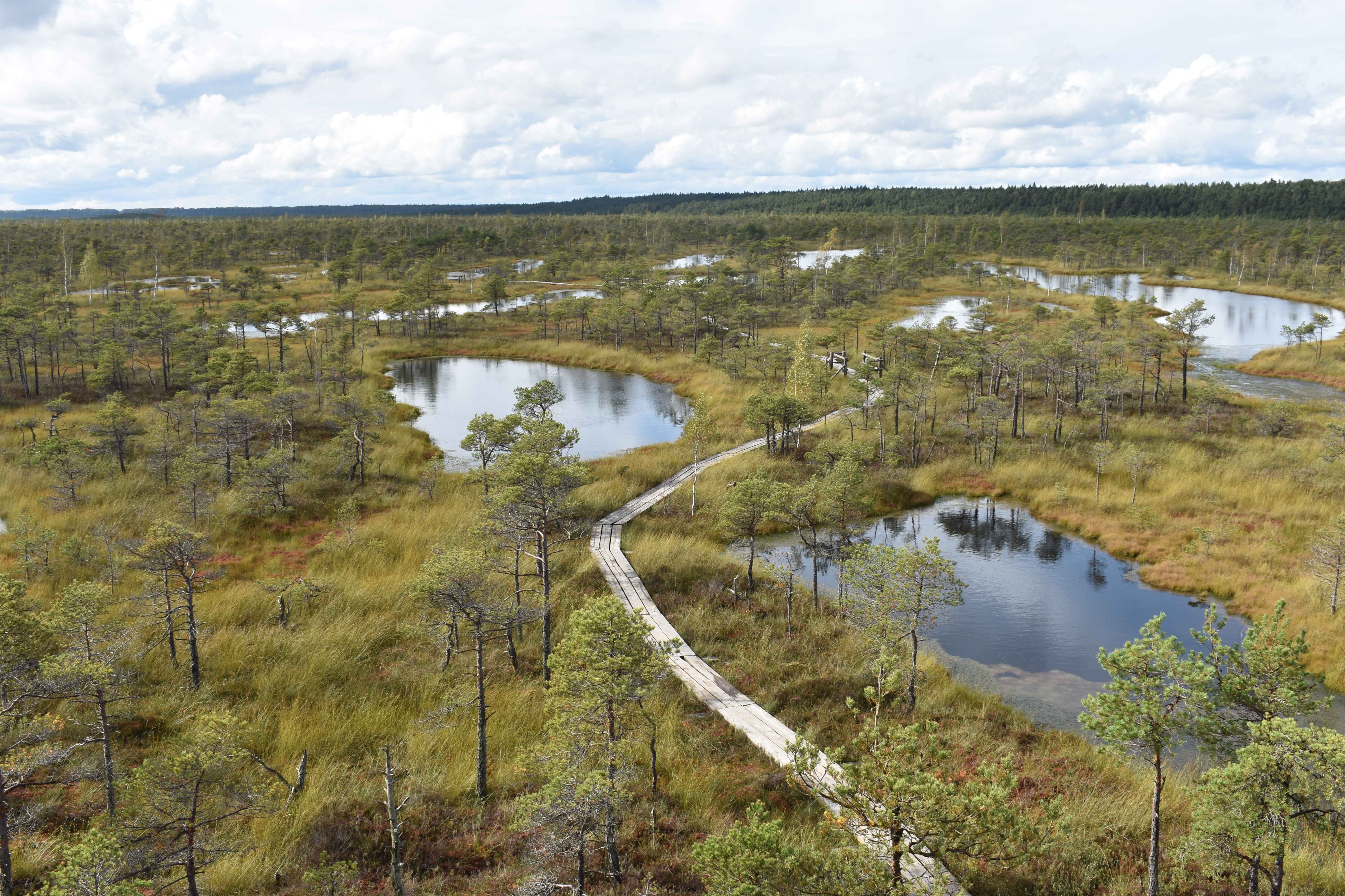Amazingly, around 50% of the city is covered by forest and our final visit was Ķemeri National Park. A trail through the trees, led to Ķemeri Bog and a wooden boardwalk trail, where eventually we had the option of a short loop (1.4 km) or a longer version (3.4 km), and we opted for the latter. The walk took us over a mosaic of open water pools, mosses, dwarf pines, and peat hummocks. Whilst it was flat, there were no handrails and as it was only three vertical planks wide, we had to carefully pass other visitors.