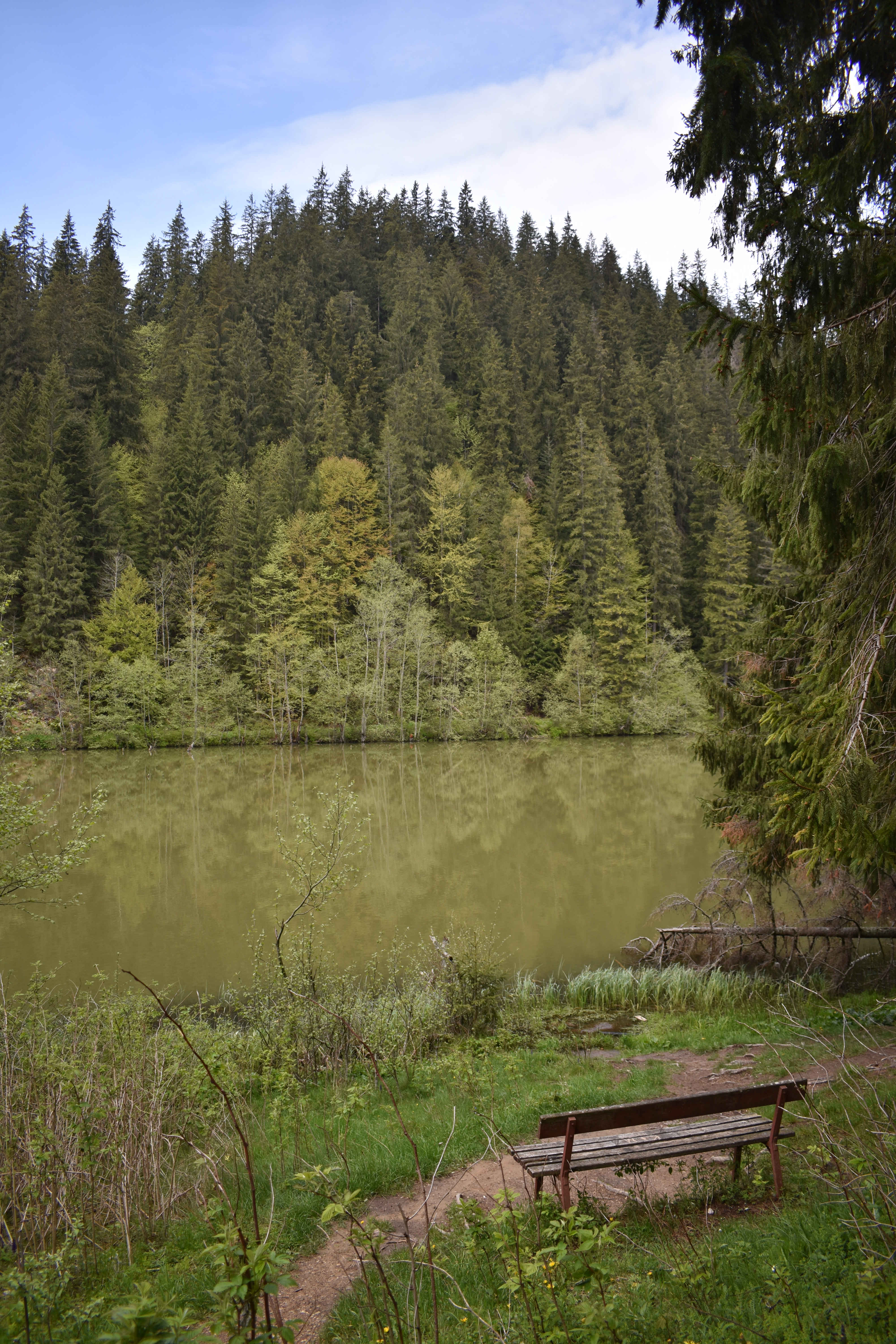 After a few kilometers we arrived at Lacul Roşu or Red Lake, a natural dam lake located just west of the gorges, formed after a landslide in 1838. It didn’t appear very red to us, but it is said to get the name from one of its tributaries, the Roșu Creek, which brings iron oxides and hydroxides in the soil, which tint the water and the lakebed. We wandered down to the edge where rowing boats were moored up as the summer season had not yet started.